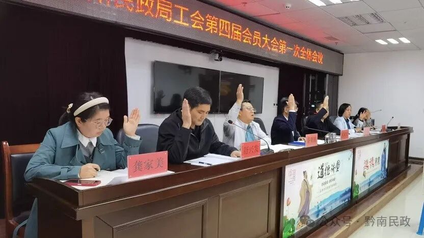 11月1日,黔南州民政局工会召开第四届会员大会第一次全体会议,选举产生新一届工会委员会委员、经费审查委员会委员和女职工委员会委员。局党组书记、局长王家兴,局党组成员、副局长张弘、蔡明刚,州社会事务发展服务中心主任高艳春出席会议。会议由州民政局第三届工会委员会主持。