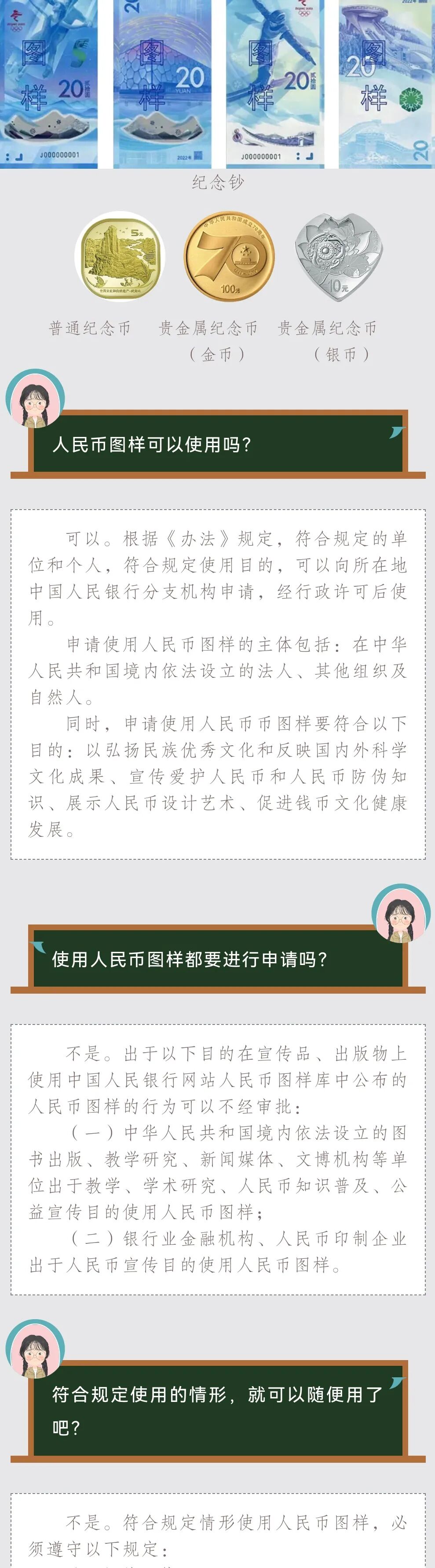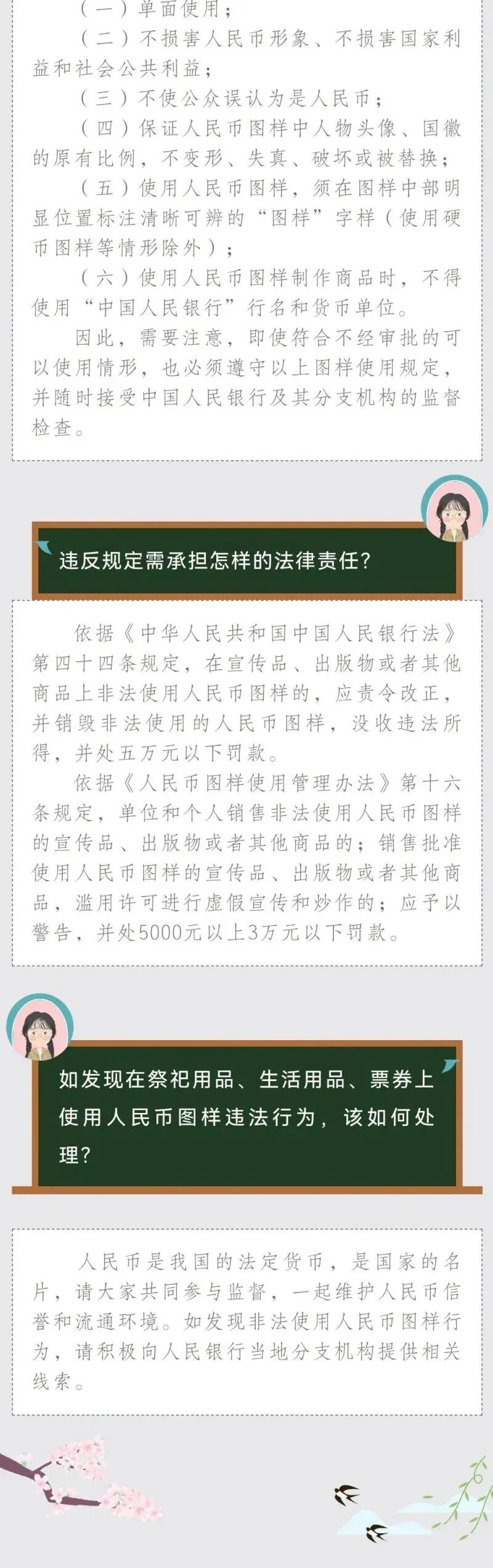 为保护人民币形象、维护人民币信誉,人民币图样需郑重对待,不得随意使用;确有需要,应经过审批后合法合规使用。