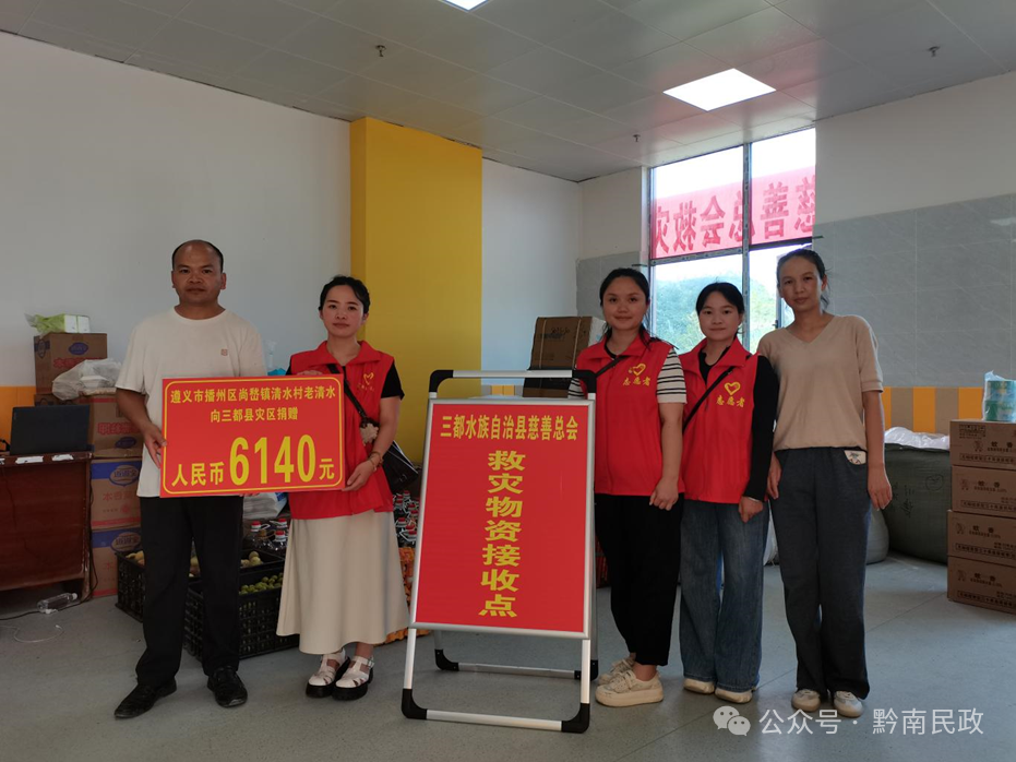 遵义市播州区尚嵇镇清水村老清水村民52人自发向三都县捐赠善款共计6140元。