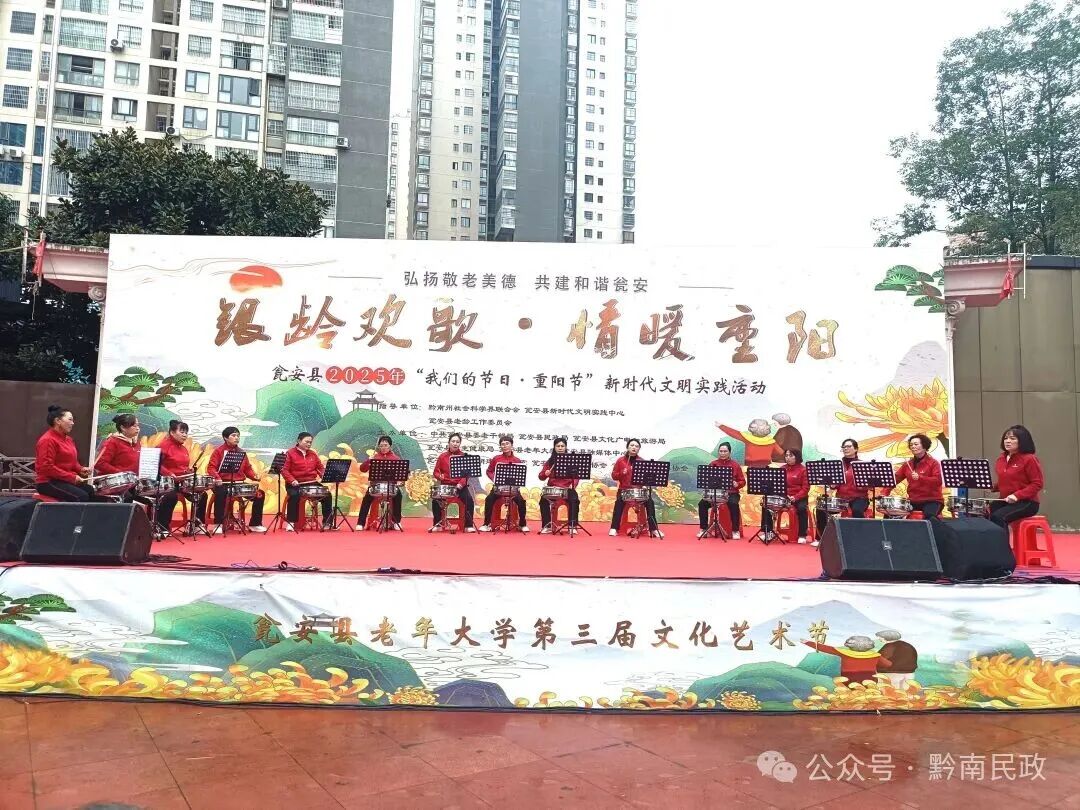 此次活动形式多样、内容丰富。一场精彩纷呈的文艺演出率先登场,《青春舞曲》《地道战》《北京喜讯传边塞》《中国功夫》《再唱山歌给党听》《奢香夫人》《萱草花开,爱在重阳》等十余个节目轮番上演,涵盖合唱、舞蹈、乐器弹奏、朗诵等多种形式。悠扬的旋律与充满活力的表演,既展现了传统文化的魅力,也传递着新时代的蓬勃朝气,赢得了现场观众的阵阵掌声。