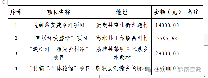 黔南州慈善总会2024年度拟捐助部分村(社区)开展“善行黔南·助力乡村振兴”项目,现将捐助项目清单(第二批、第三批)予以公示,公示期5天。公示期间如有疑问或意见,请致电反馈。